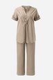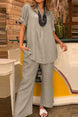 Dressed-up Casual: Short-Sleeved V-neck Top & Wide Trouser Suit